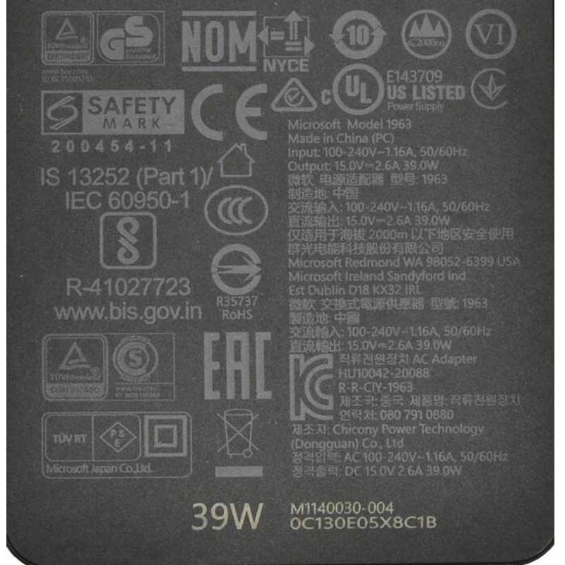 - Package includes:1 x Microsoft Charger + 1 x Power Cord(Fit Your Country)
