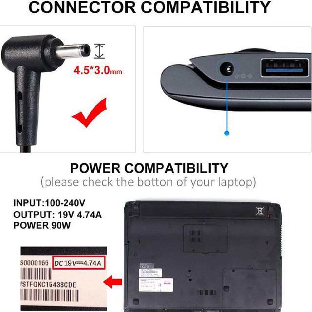 19V 4.74A 90W Asus 4.5mm 3.0mm AC Adapter Charger